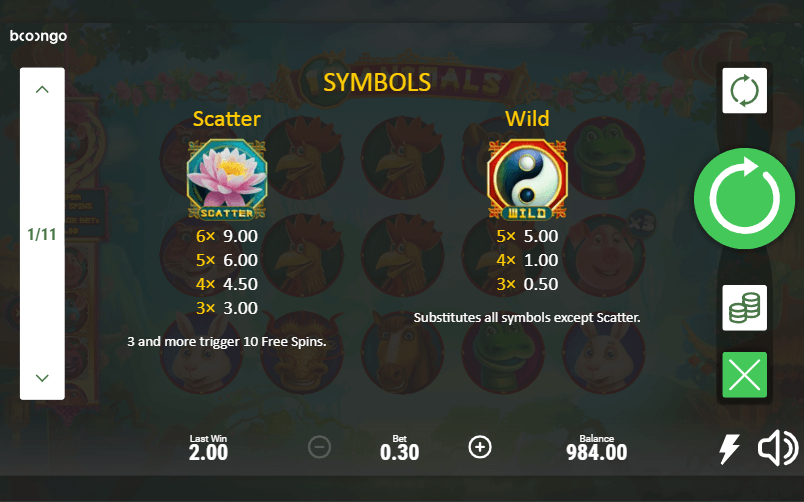 12 Animals slot is based on Animal thematic, although you will easily detect details from Chinese, Dragon, Tiger, Wild topics as well. Undoubtedly, in case you love these previously mentioned slot machine thematics – enjoyment from discovering all features of this online slot machine will be really phenomenal.