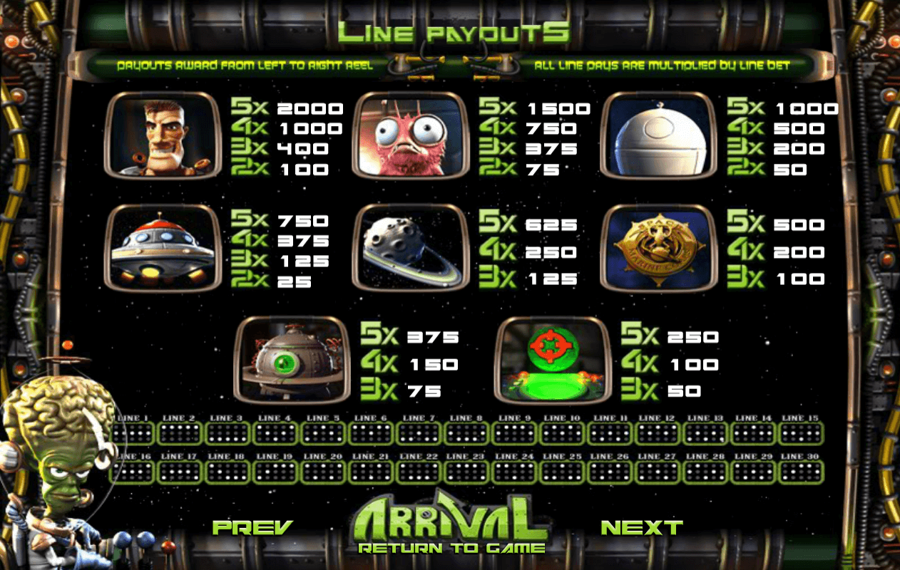 Arrival slot is a product of BetSoft, which has been in the year 2014, seeks a brilliant theme of Alien and spaceship. This is one of the newest concepts today.