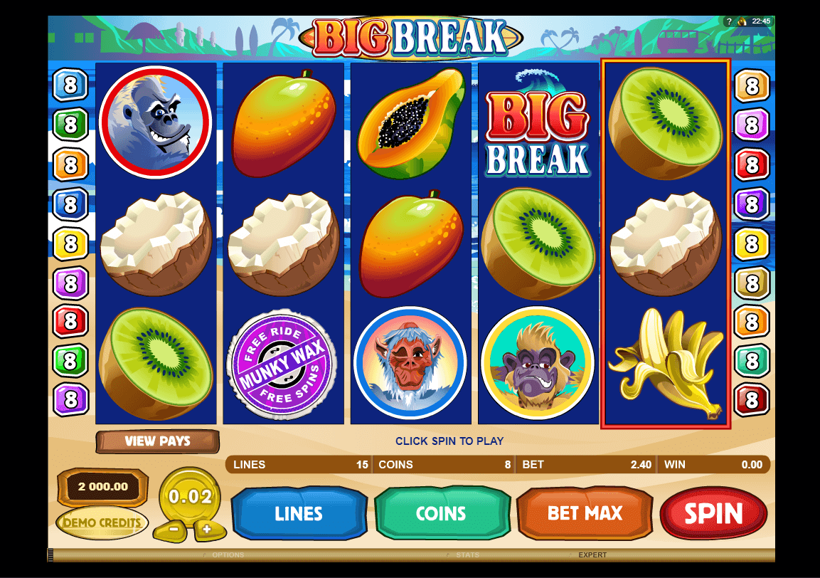 Revise our comprehensive Big Break slot review to learn more about this vivid casino game that represents Fruit, Lucky, Cartoon themed slots. Clearly, latter themes for gamers means lots of nice opportunities caused by all elements or actions linked to themes.