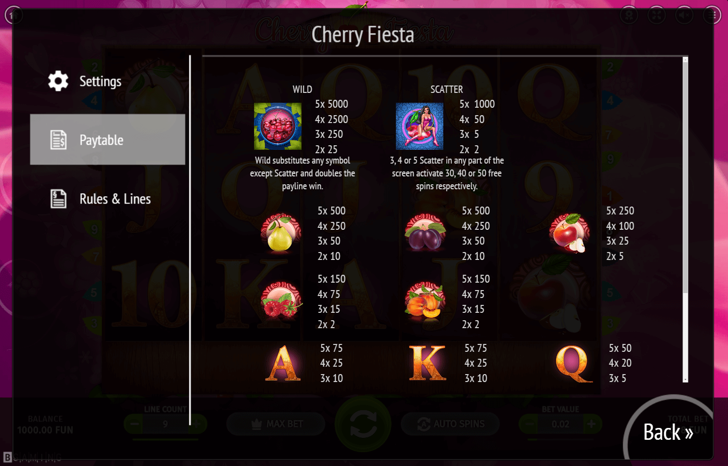 It would be remiss not to mention BGAMING in this Cherry Fiesta slot review. As a prominent gaming software provider, they have developed modern and immersive online slot machines for real money play. So, if you’re searching for a Cherry casino to play, keep an eye out for their logo in the footer of the page.