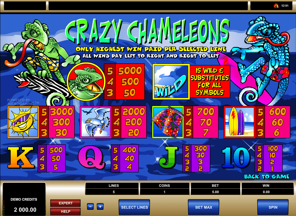 Crazy Chameleons slot is a 5 reels as well as 5 paylines video slot machine, made in 2015. Definitely, online game can be marked as new but reliable.