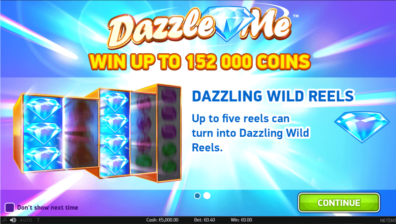 Dazzle Me slot is one of the original and creative casino games offering an asymmetric layout of the reels. The great linkage of dazzling wild reels with linked reels offers Dazzle Me free spins.
