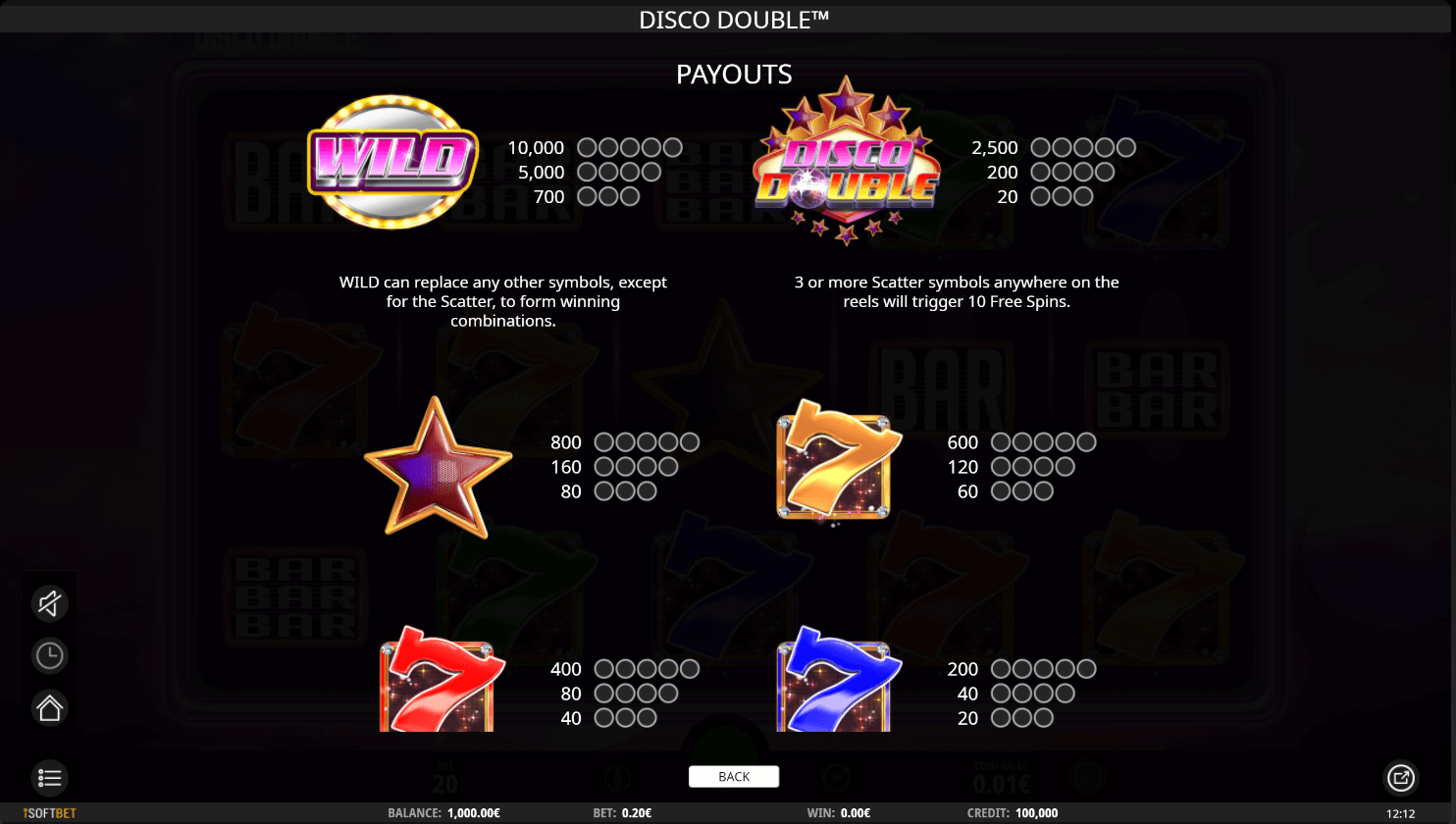 Disco Double slot depends on Music thematic, but you will easily detect aspects from Diamond, Las Vegas, Wild thematics as well. Surely, in case you are fond of some of latter online slot topics – enjoyment from exploring all features of this slot will be absolutely impressive.