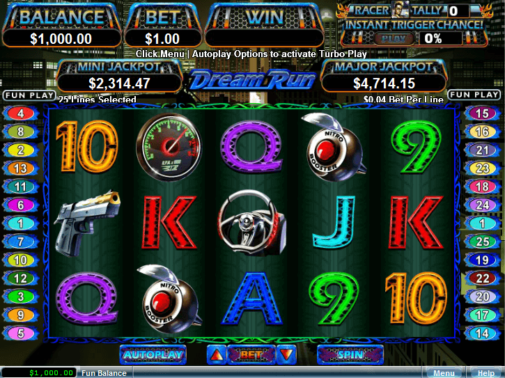 Dream Run slot has 5 reels as well as 25 paylines progressive slot machine, launched in 2013. Clearly, casino game should be marked as well-established.