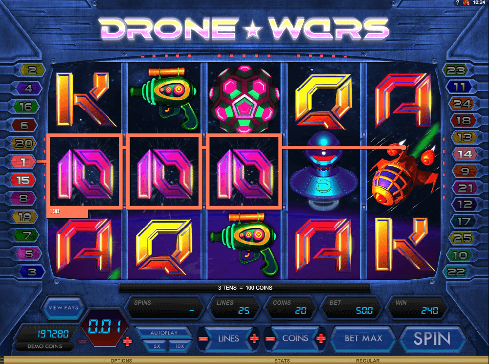 - The scatter triggers Multiple Bonus Round on appearing over 3 times. The first space attack rounds present Drone Wars free spins and the planetary assault rounds will end up giving 50x multipliers.
