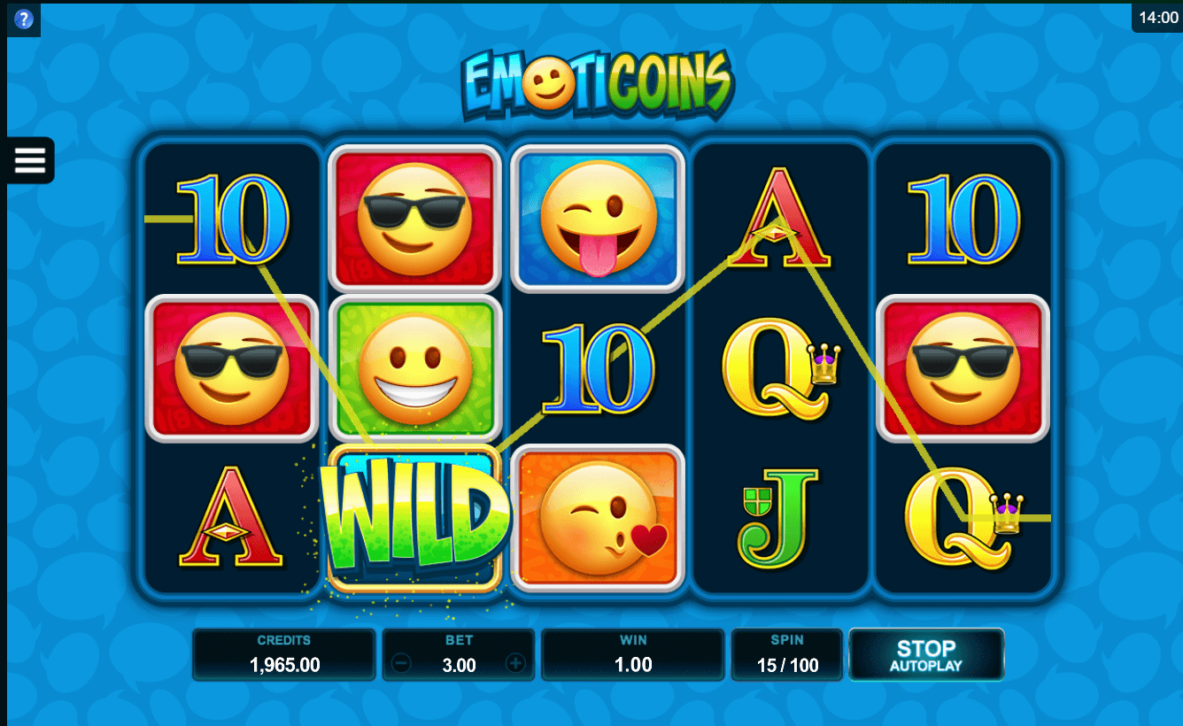 – Emoticoins Free Spins. This one is activated with the help of LOL scatter. When you get 3 of these at the same time you will be given 10 extra spins. During this round you will see sticky Wilds on the reels which will benefit your winnings. This feature is triggered just once and during your final spin there will be 5 wilds on the reels.