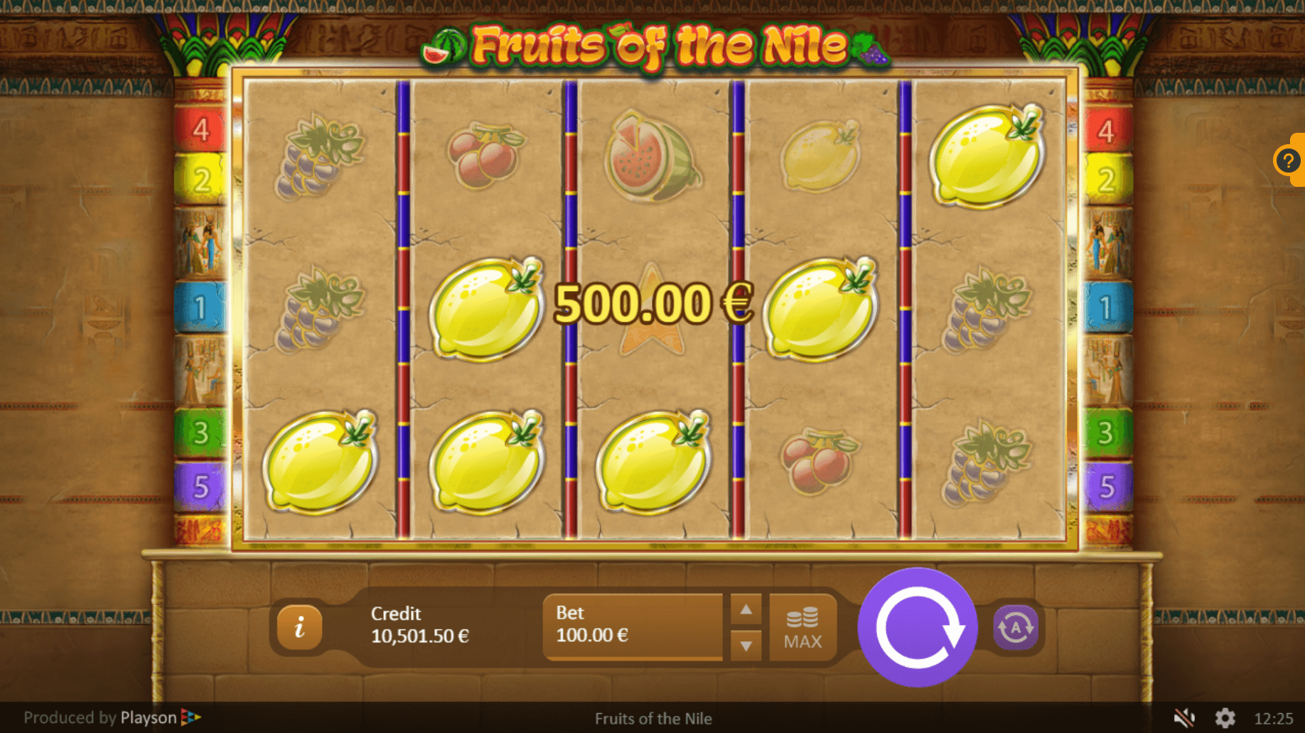 Fruits Of The Nile slot is a 5 reels and 5 pay lines video slot machine, created in 2015. Undoubtedly, casino game could be named as recent and great.