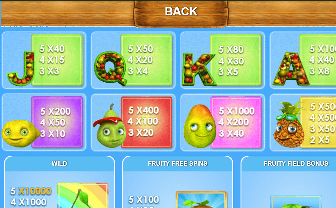 - Fruity Field Bonus is activated by picking the strawberry fruit on display and collect cash prizes. Finding a trophy in the fruit is a bonus as it increases the multiplier by 1x.