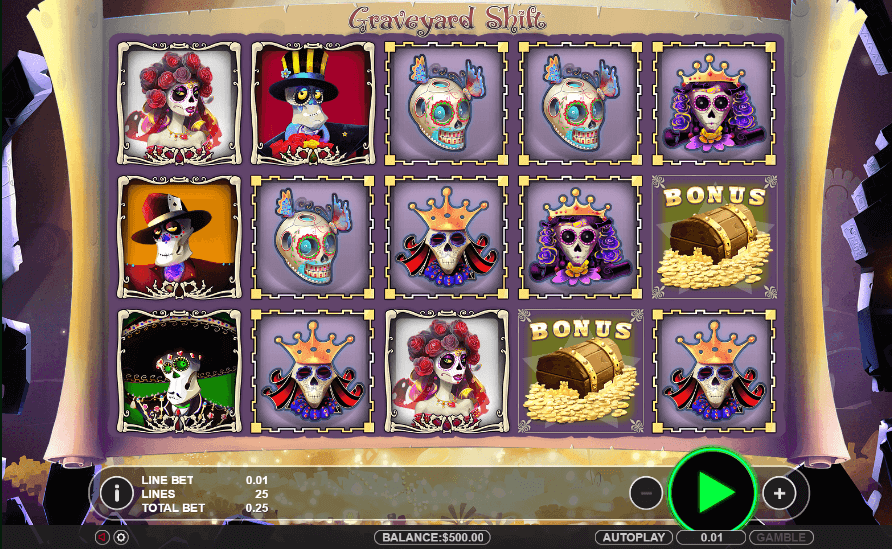 Graveyard Shift slot is a 5-reel and 25 pay lines progressive slot machine, created in 2017. Certainly, casino game could be marked as fresh and beautiful.