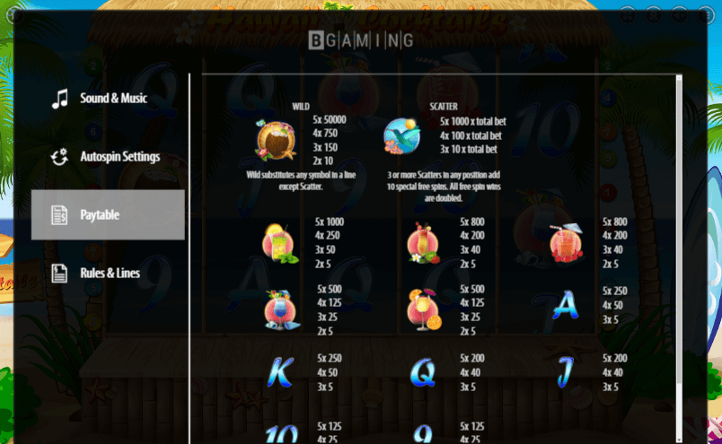 Hawaii Cocktails slot has 5-reel and 9 paylines video online slot, launched in 2015. Undoubtedly, casino game can be labeled as new and modern.