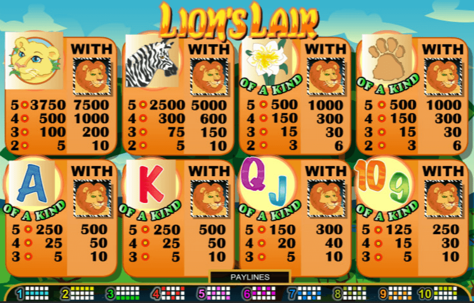 Revise short Lion’s Lair slot review to figure out more about this enjoyable casino game that portrays Adventure, Animal, Tiger, Wild themed slots. Surely, previously mentioned thematics for slot fans means a lot of awesome times produced by all components and ceremonies linked to themes.