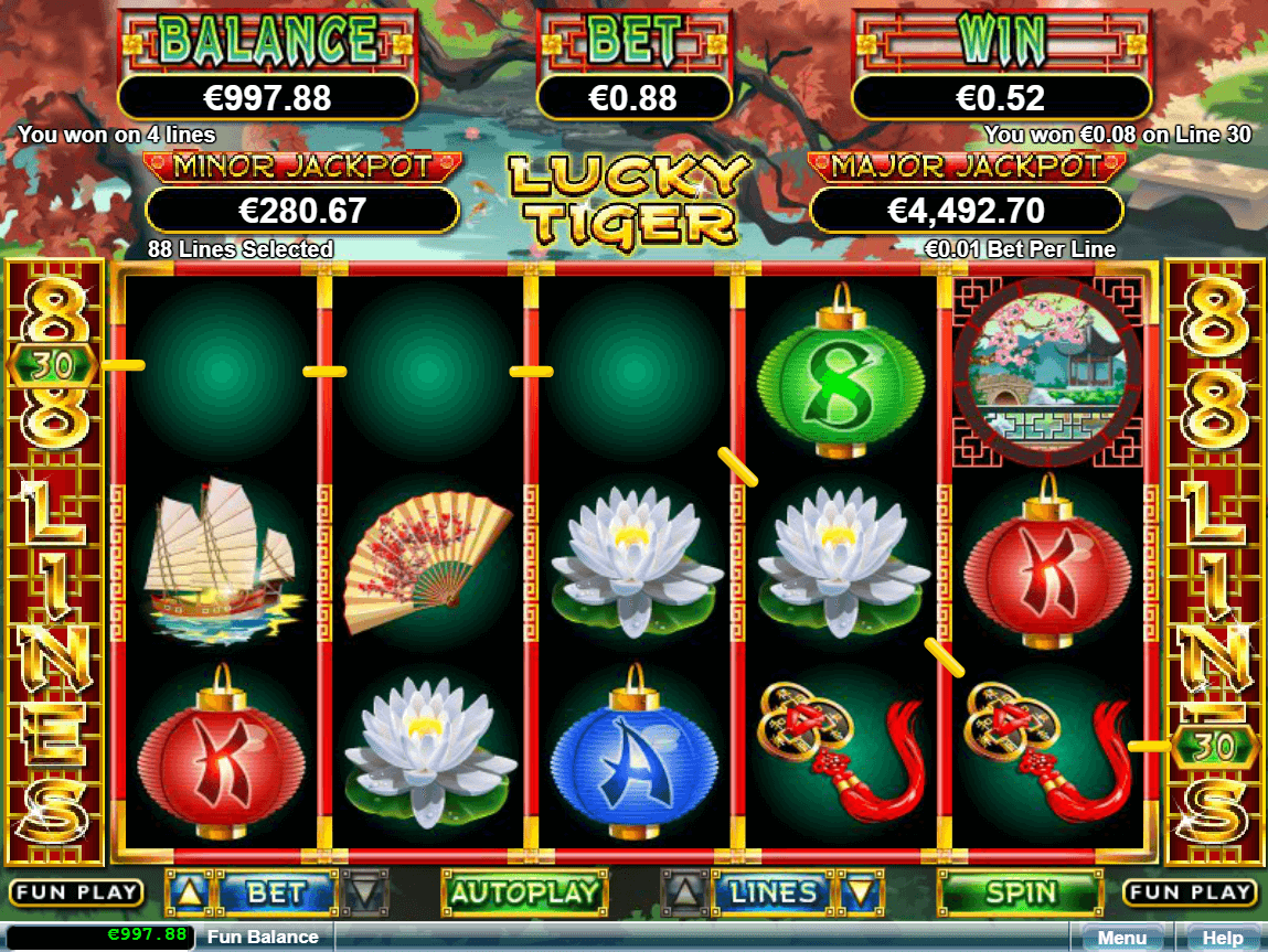 Released in 2011, the Lucky Tiger slot features 5 reels and 88 paylines, establishing itself as a well-established casino game.