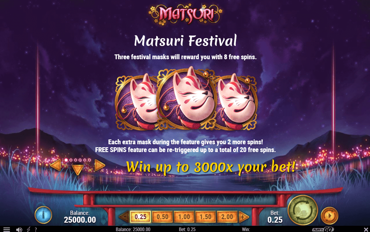 Run over broad Matsuri slot review to figure out more about this distinctive casino game that portrays Asian, Party, Fortune, Cats, Fish themed slots. Certainly, previously mentioned topics for players means a lot of great times created by all aspects and celebrations akin to themes.