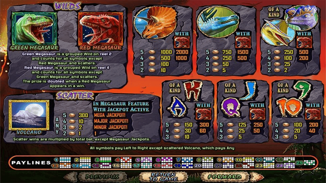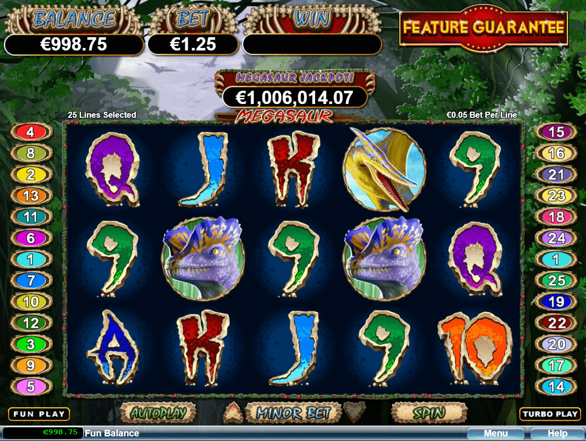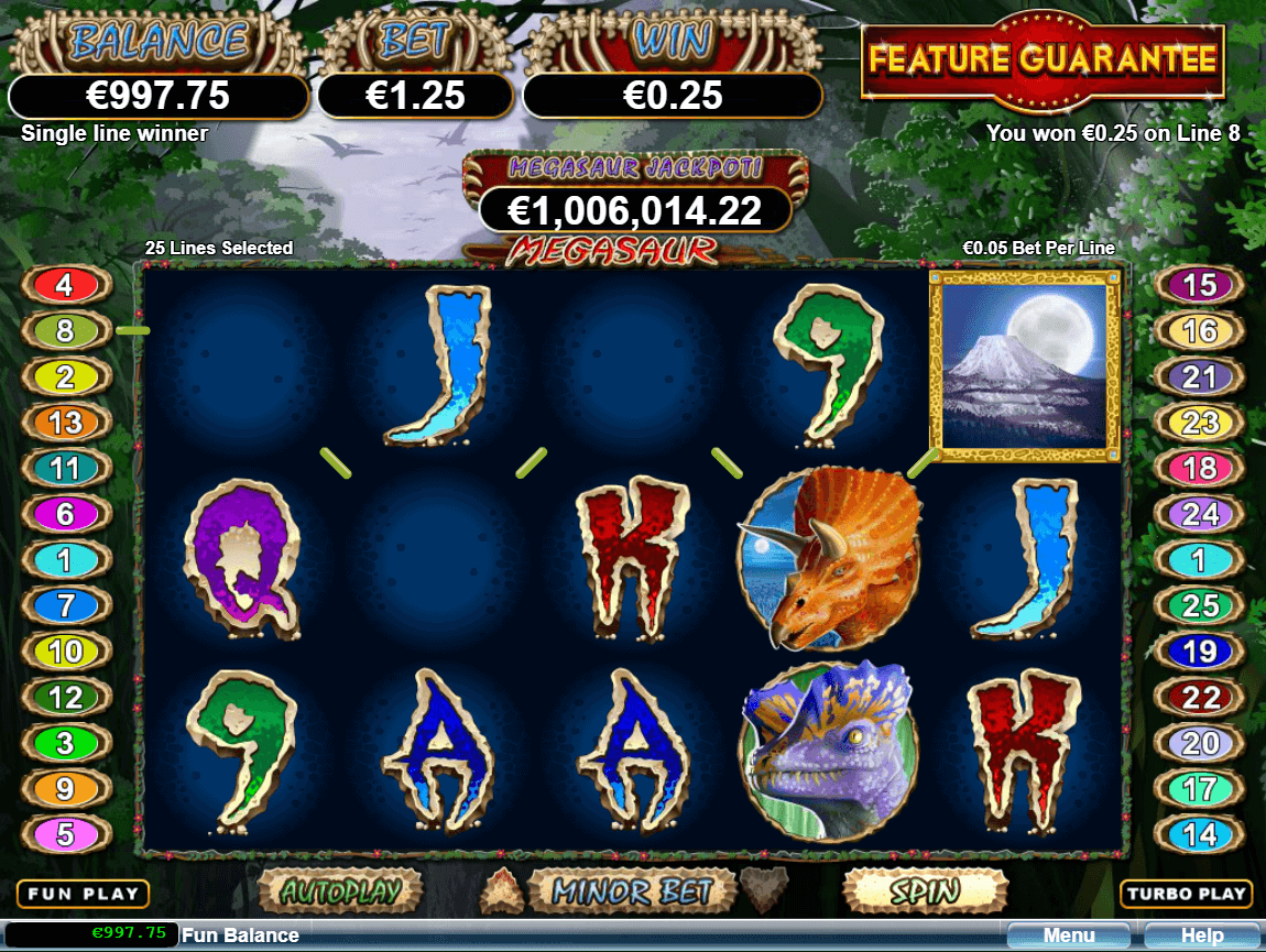Megasaur slot has 5-reel and 25 paylines progressive slot machine, launched in 2015. Clearly, casino game should be named as fresh and beautiful.