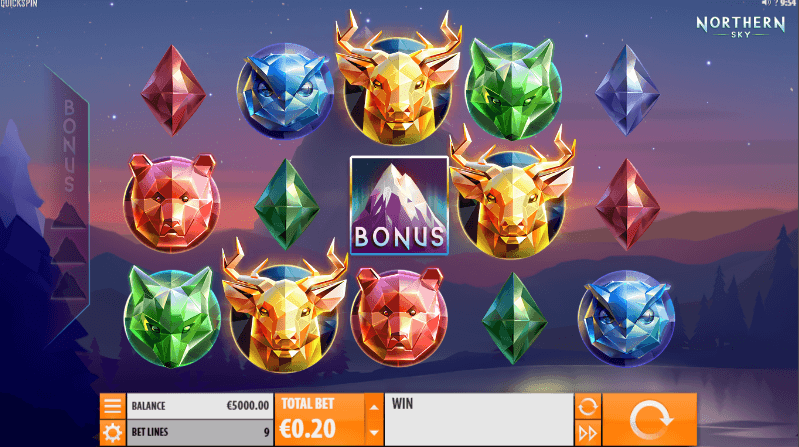 - Bonus Free Spins: On accumulating 3 scatter symbols in a single game round, the player will be offered with 10 Northern Sky free spins. The players should always keep checking the bonus meter to be aware about their bonus free spins. The astonishing fact is that high paying animal symbols will only be played on triggering a bonus game.