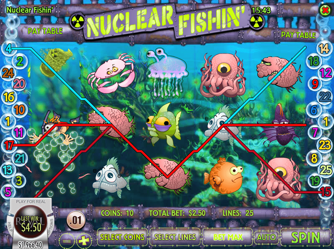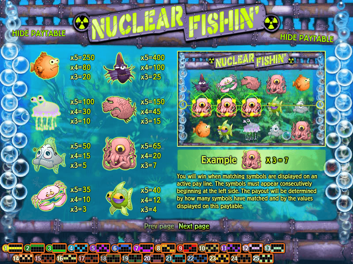 Check out our brief Nuclear Fishin’ slot review to learn more about this attractive online game which portrays Fish, Ocean, Mystery, Battle, Adventure, Wild themed slots. Clearly, latter thematics for players means heaps of fun moments induced by all aspects and celebrations related to themes.
