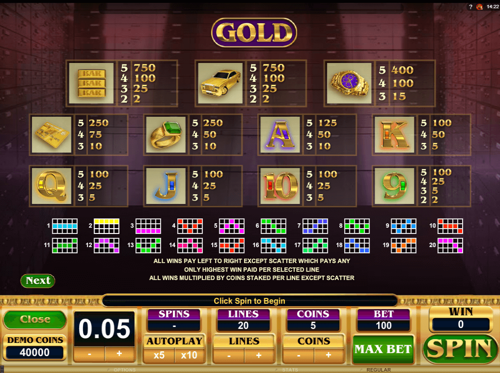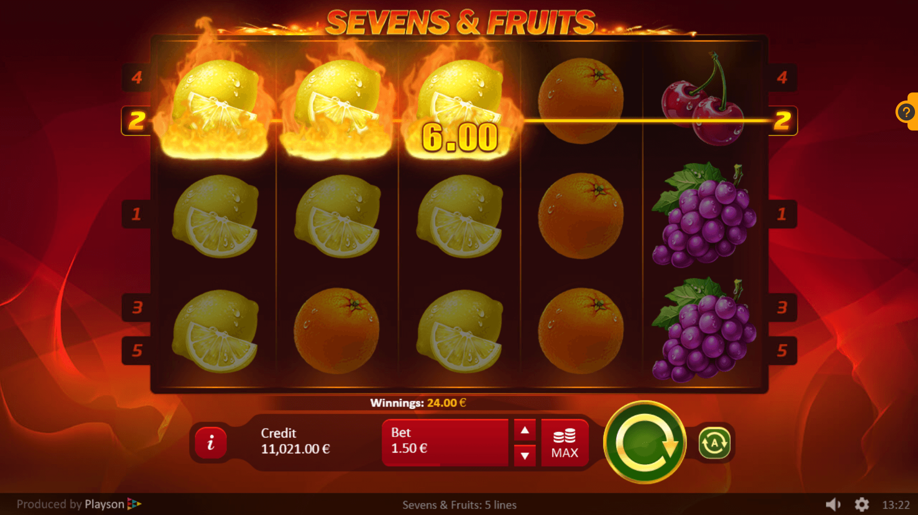 Allowed amount of coins to bet differs from 1 to 5 while coin rate ranges between 0.01 and 2.