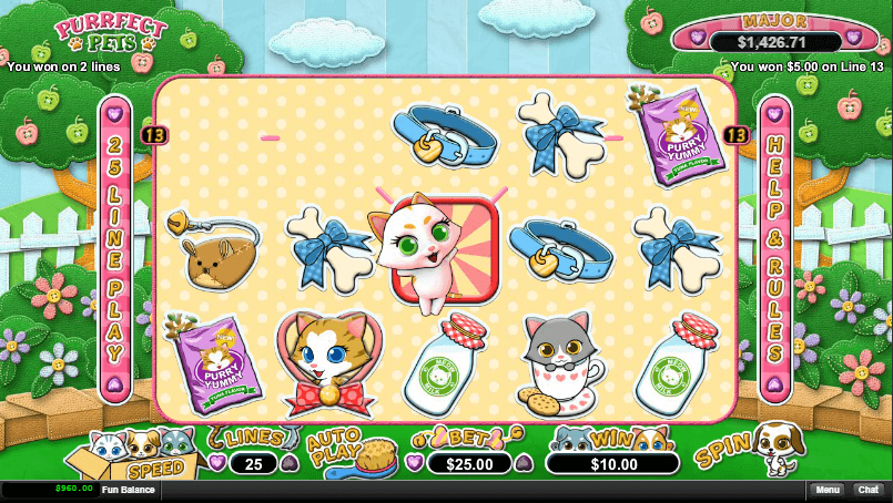 Purrfect Pets slot has 5 reels as well as 25 pay lines progressive slot, launched in 2017. Surely, casino game must be marked as fresh and beautiful.