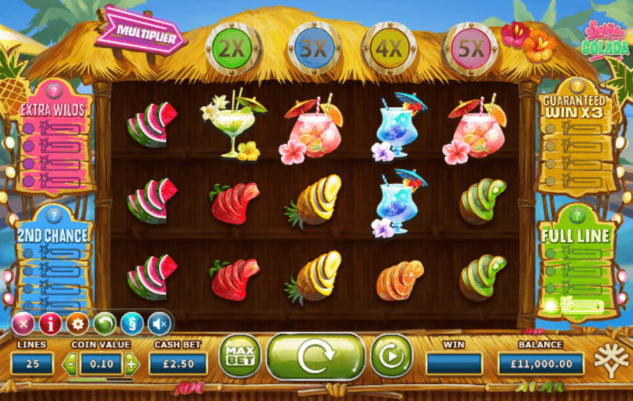 Spina Colada slot is a 5-reel and 25 pay lines video online slot machine, created in 2017. Definitely, game can be labeled as recent and great.