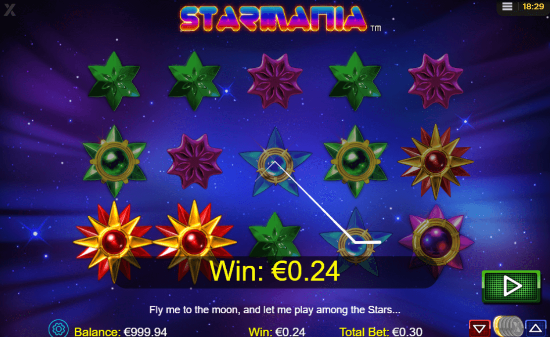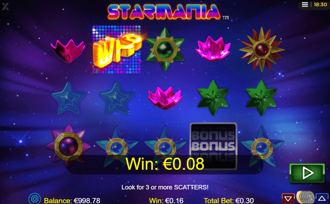 - To set off the Starmania free spins feature, three or more scatter symbols should land on the reels. The reward for this is 10 free spins that can be re-triggered.