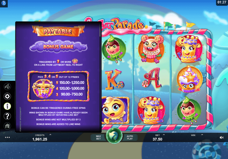 Look through our explicit Sugar Parade slot review to figure out more about this attractive game which portrays Paradise, Cartoon, Candy themed slots. Certainly, previously mentioned thematics for players means heaps of nice times produced by all elements and events connected to themes.