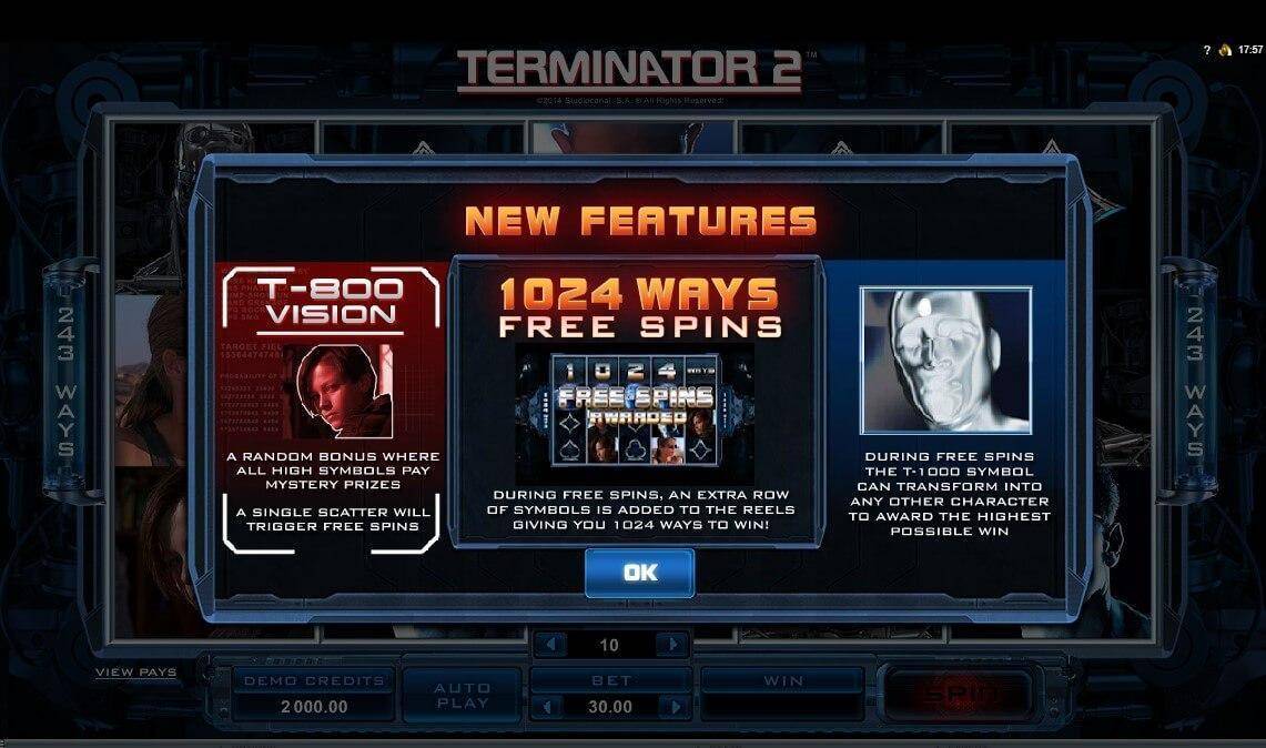 Terminator 2 slot has 5 reels and 243 paylines video online slot, created in 2014. Definitely, online game can be named as established.
