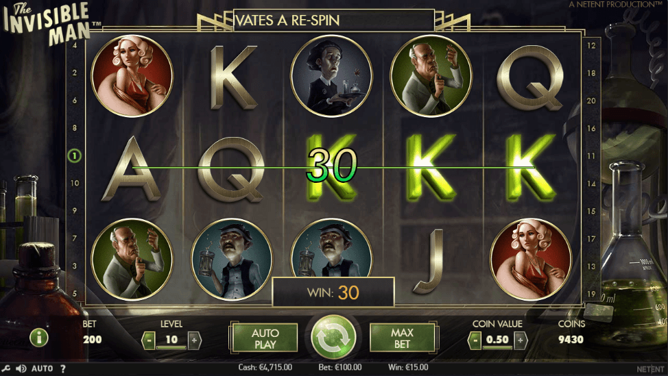 The Invisible Man slot has 5 reels and 20 paylines video slot machine, made in 2014. Clearly, online game should be named as old but gold.