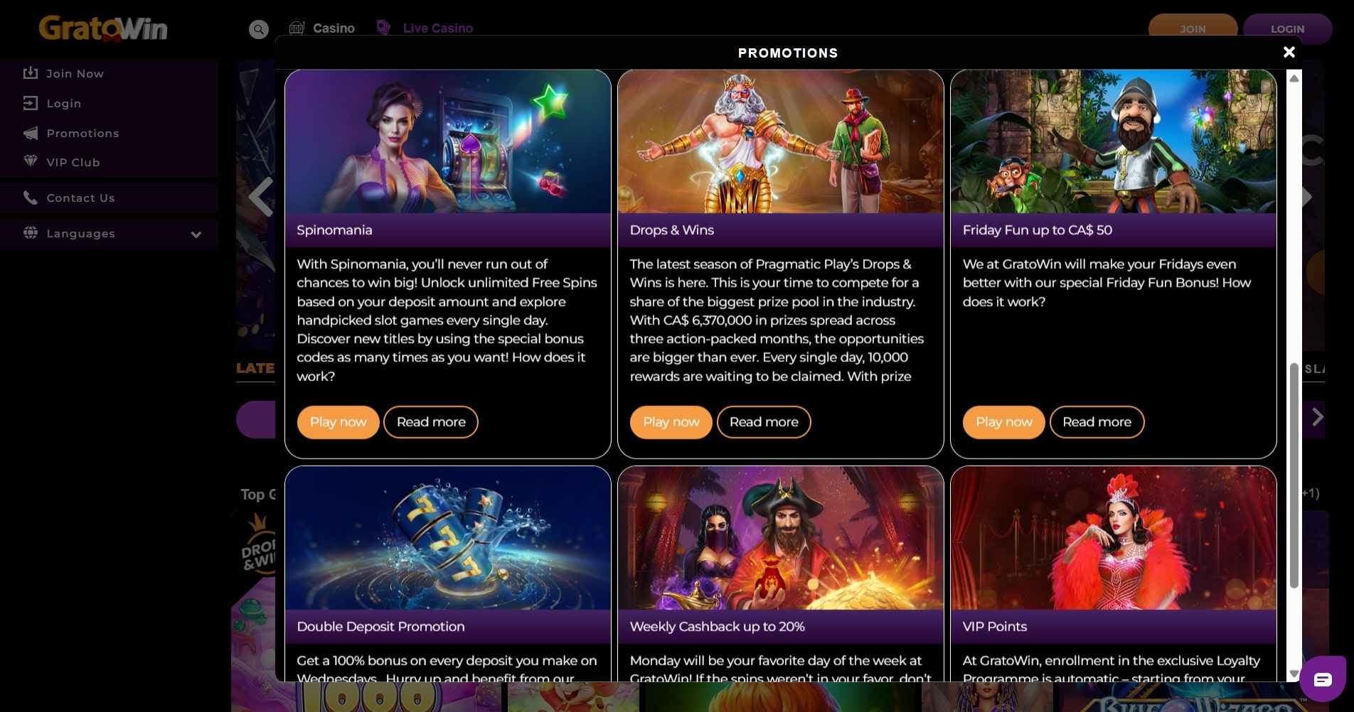 Keep an eye on Weekly Cashback offers of up to 20%, VIP Points that convert into bonus money, and a special Friday Fun bonus where you can nab an extra €50. Promotions change frequently, so always check the Gratowin promotions page to stay updated.