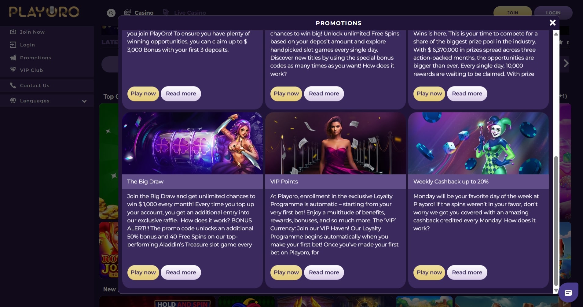 Playoro may be relatively new to the online casino scene, but it has quickly gained a reputation for providing a broad spectrum of games, straightforward bonuses, and top-notch customer support. Its multi-tiered welcome package and VIP program cater to both newcomers and high rollers alike.
