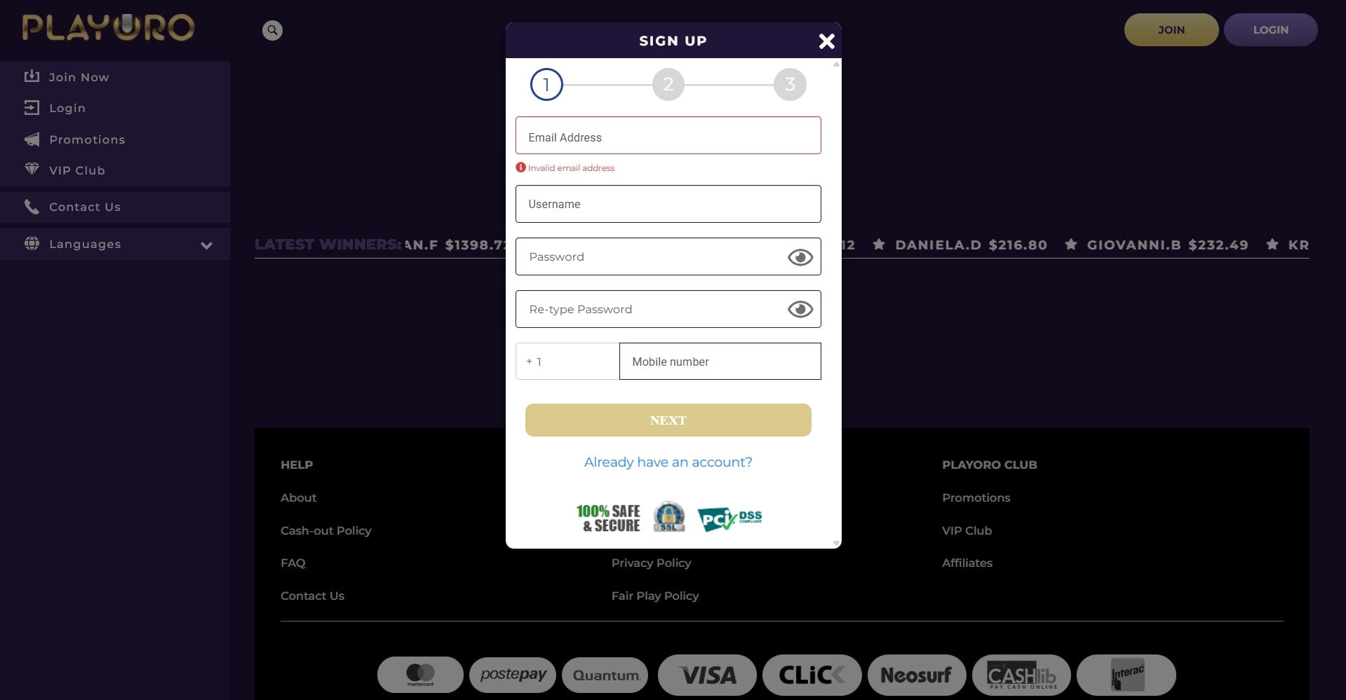 The support team is fluent in multiple languages, including English, French, Spanish, Italian, German, Portuguese, Finnish, and Arabic. For quick fixes, Playoro also maintains a thorough FAQ section covering account registration, deposits, withdrawals, bonus usage, and more.