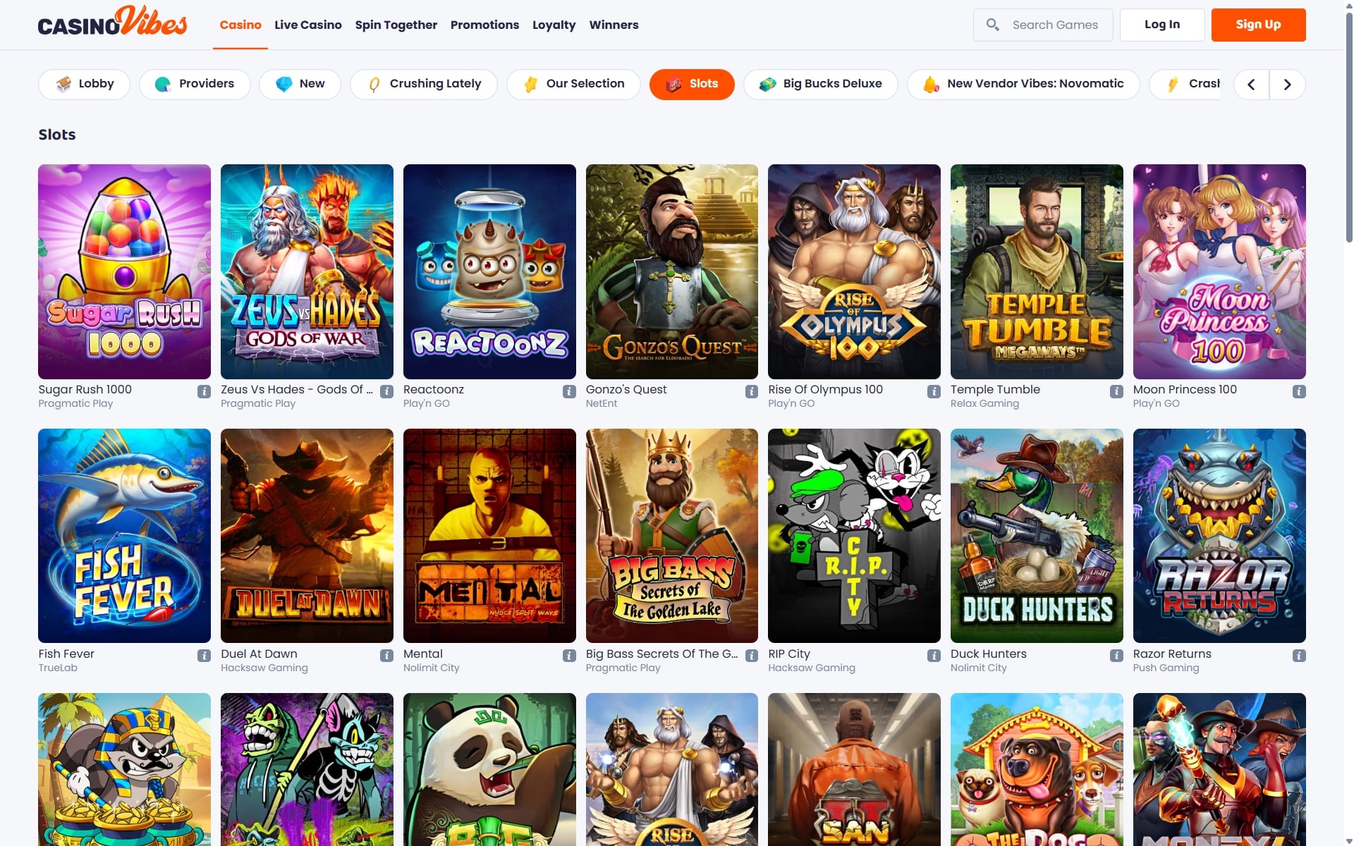 • Pragmatic Play, Play’n GO, NetEnt, Quickspin, Red Tiger, Thunderkick, Big Time Gaming