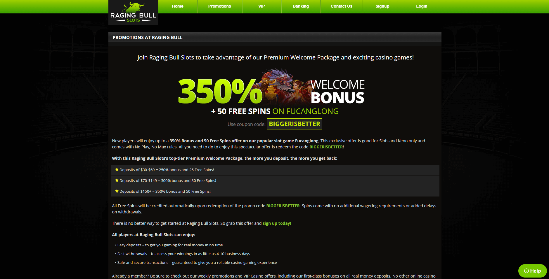 Like most online casinos, there are pros and cons. The RTG library may not be as expansive compared to other online casinos. Besides this, you’ll enjoy playing Raging Bull slots and other casino games.