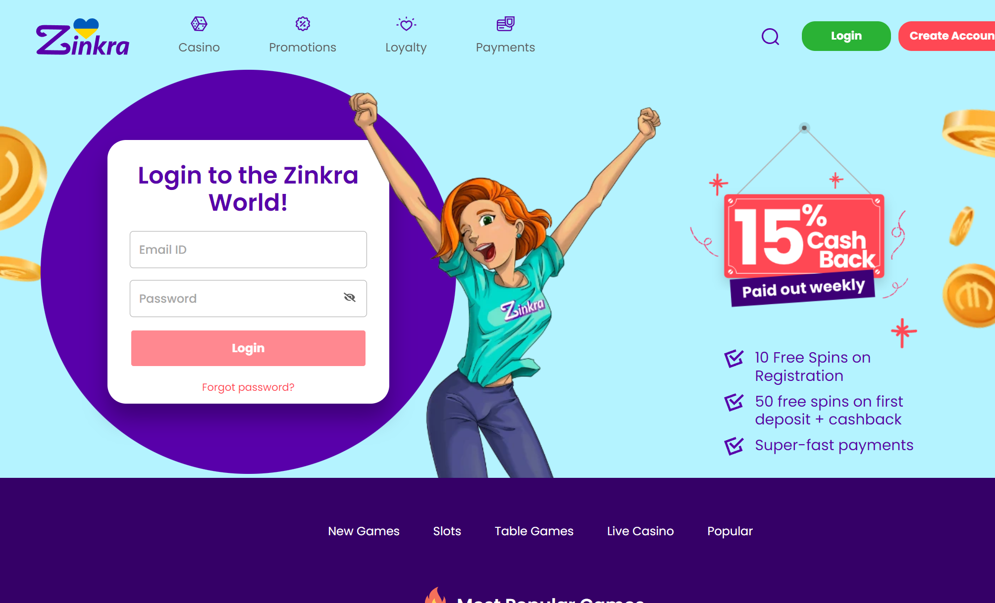 | Slots | 200+ | Cash Chaser, Gemstone Keys: The Arcane Ur, Magic Forest: Spellbound, T-Rex Wild Attack |