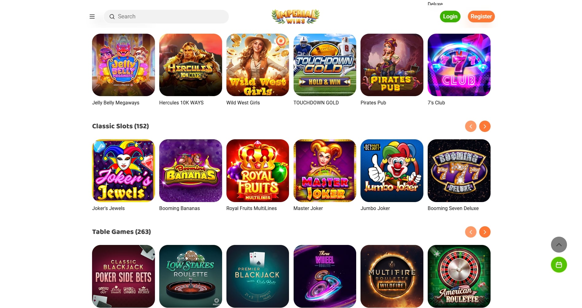 | Slots | Classic 3-reel, video slots, bonus-packed features |