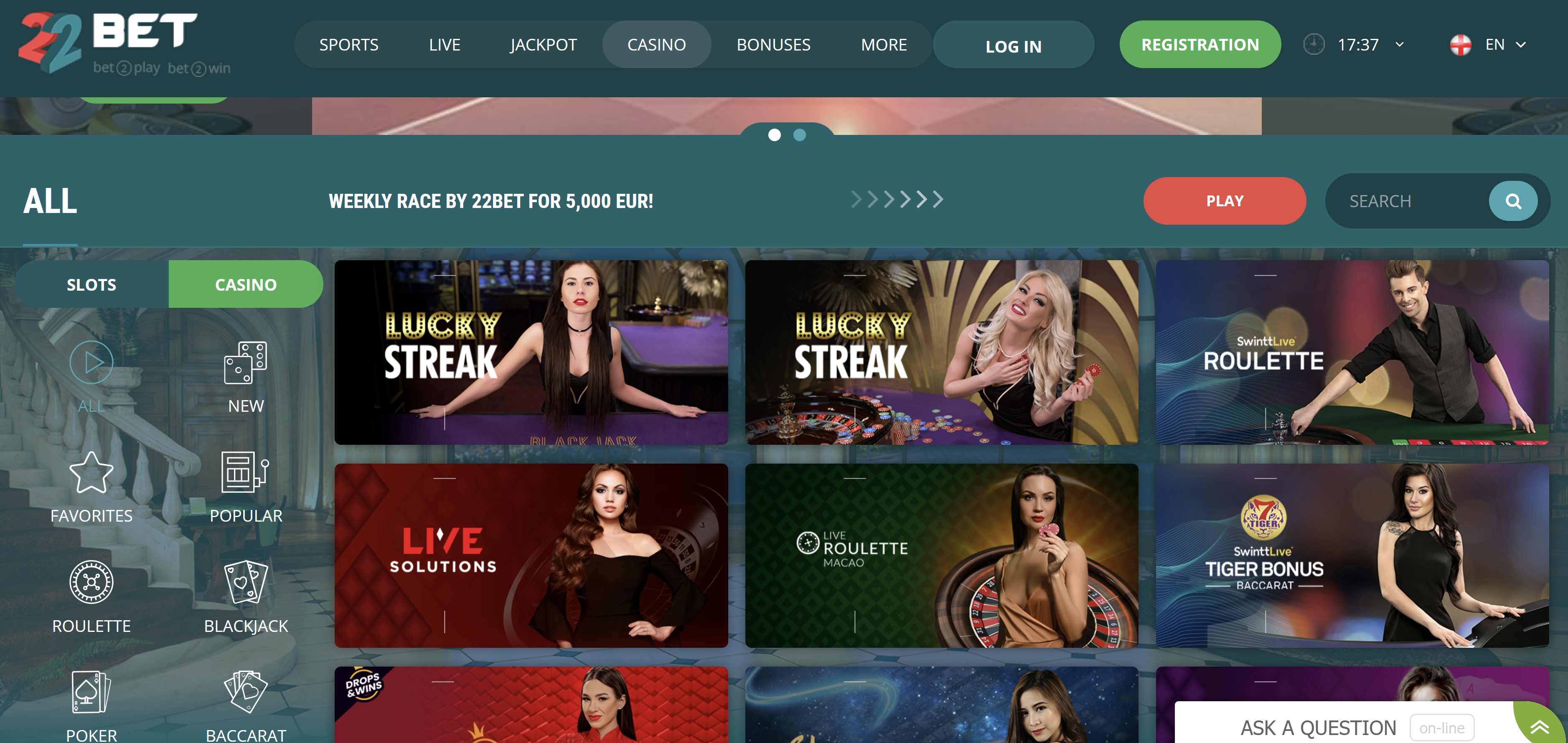 If you like 22Bet Casino, we suggest to discover sister-casinos from 22Bet. You may expect similar quality of games, design and features.
