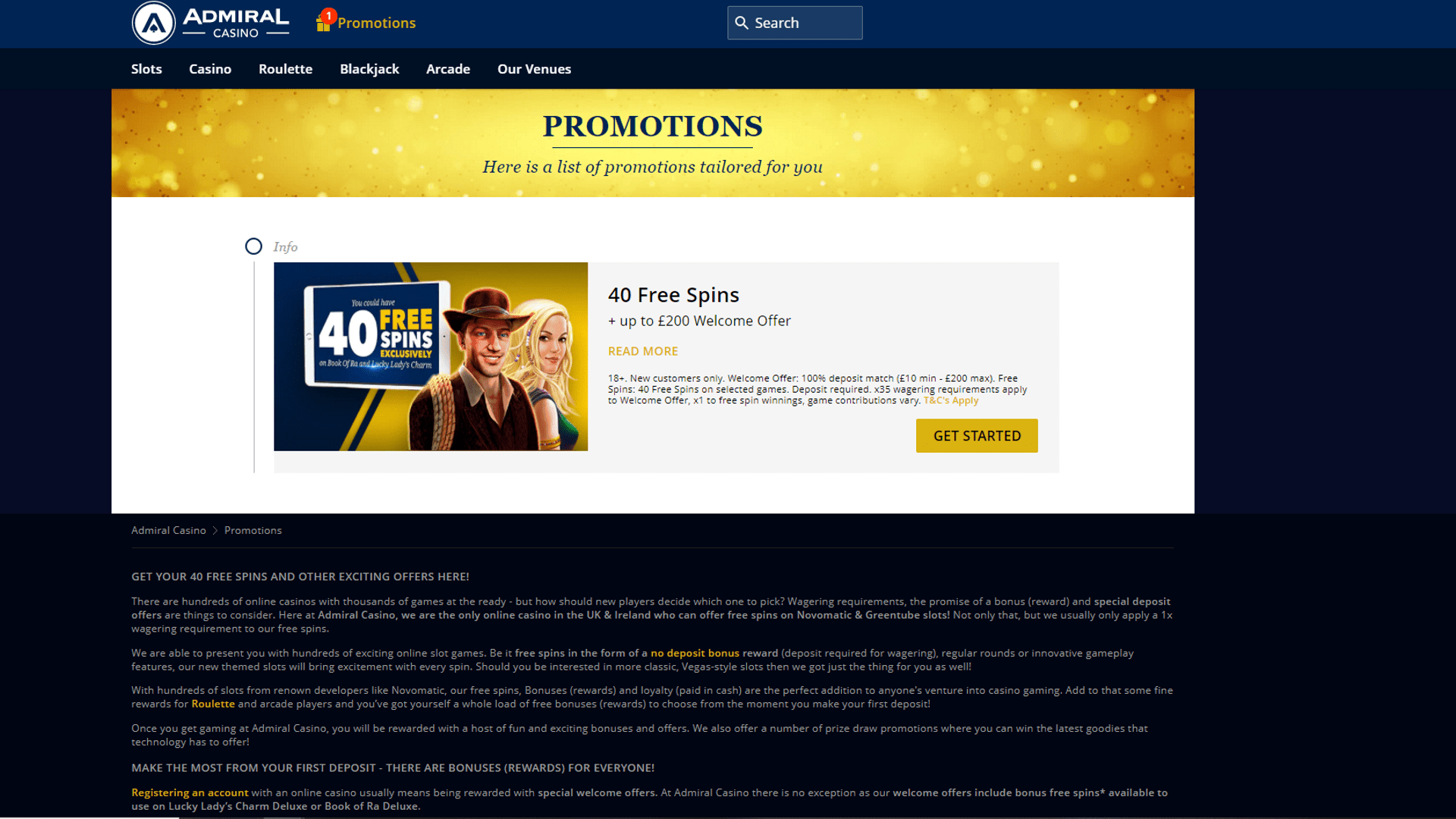 - Admiral Casino bonus as soon as we get it
