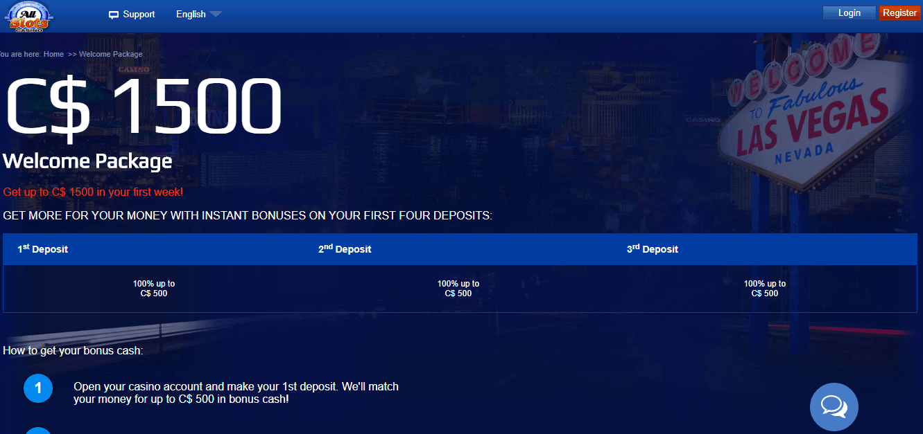 All Slots Casino offers email support and a live chat feature for its users. 24/7 support is your emergency contact whenever you need help. Live chat is the quicker way to receive a response. An automated response will start the chat, but you’ll eventually connect with a human customer care agent.