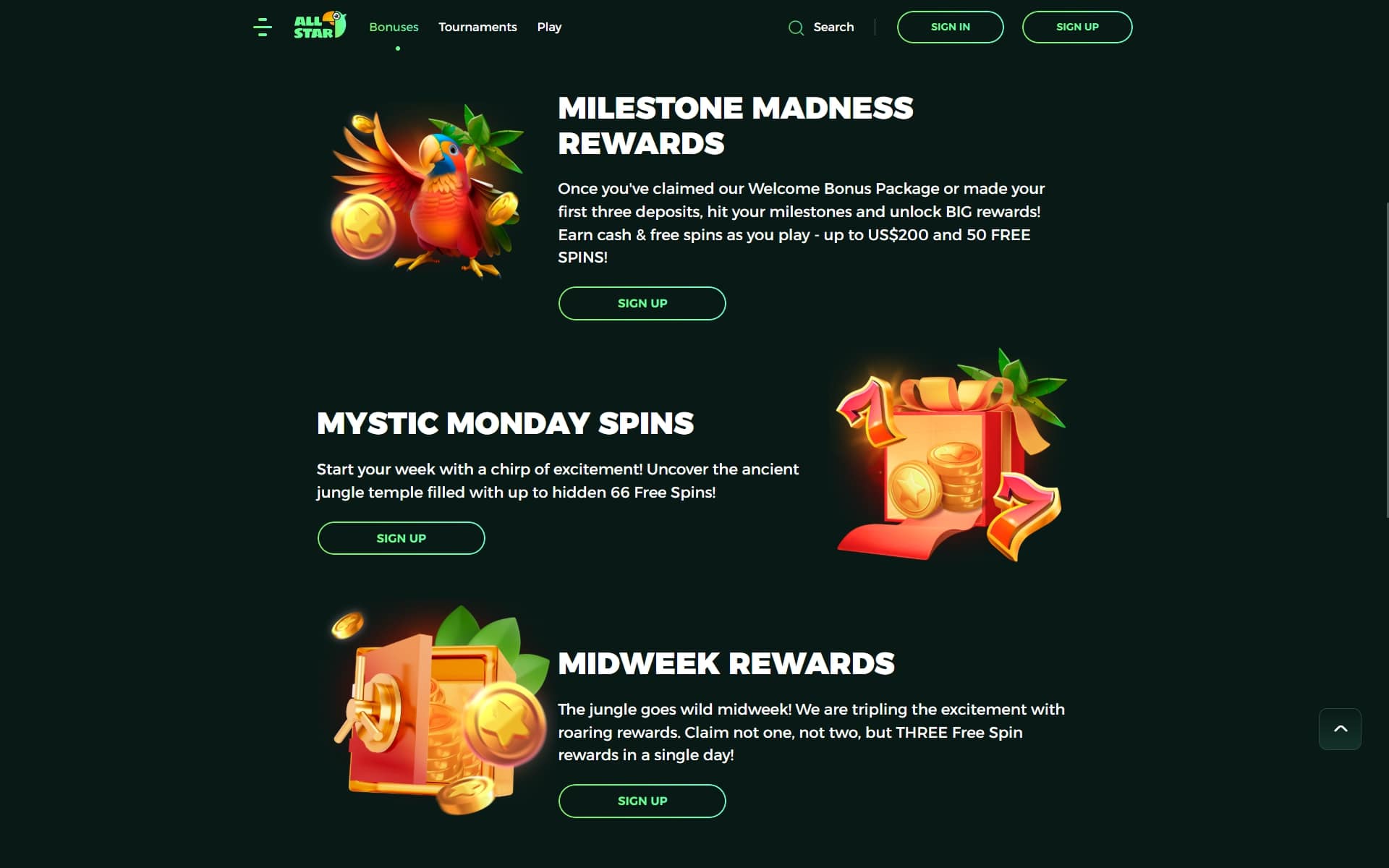 Ready to aim for the stars? Join All Star Casino for a 275 % welcome up to $5,000 + 150 free spins, weekly Mystic Monday & Midweek Rewards, and 5,000 + games on any device. Your stellar win is just one spin away!