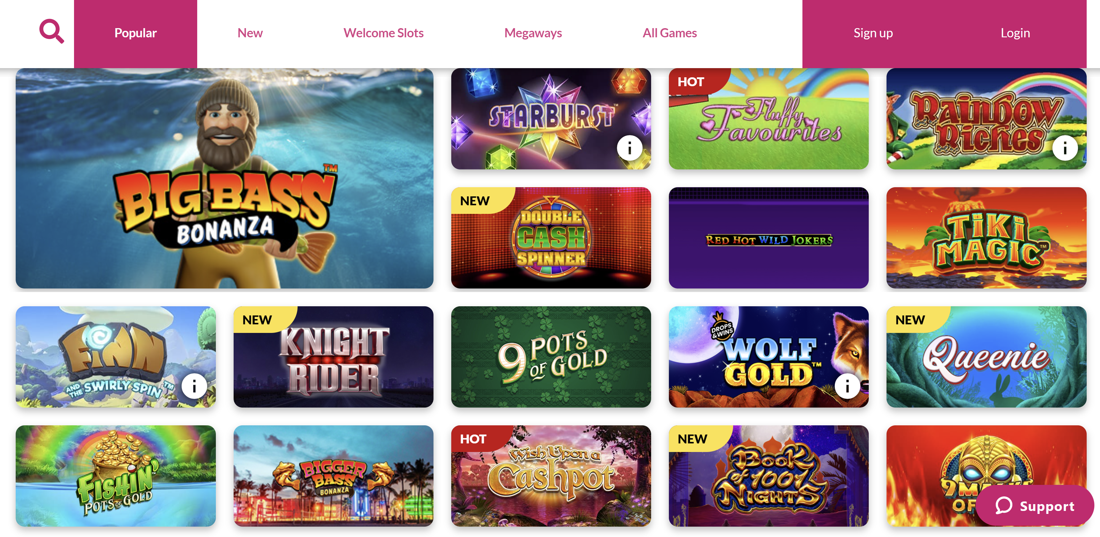 Their slot section is one of the best attractions here. Try your luck at games like Rainbow Riches, Double Cash Spinner, Book of Fallen, Fishin Frenzy, King Kong Cash, Power of Thor, etc.