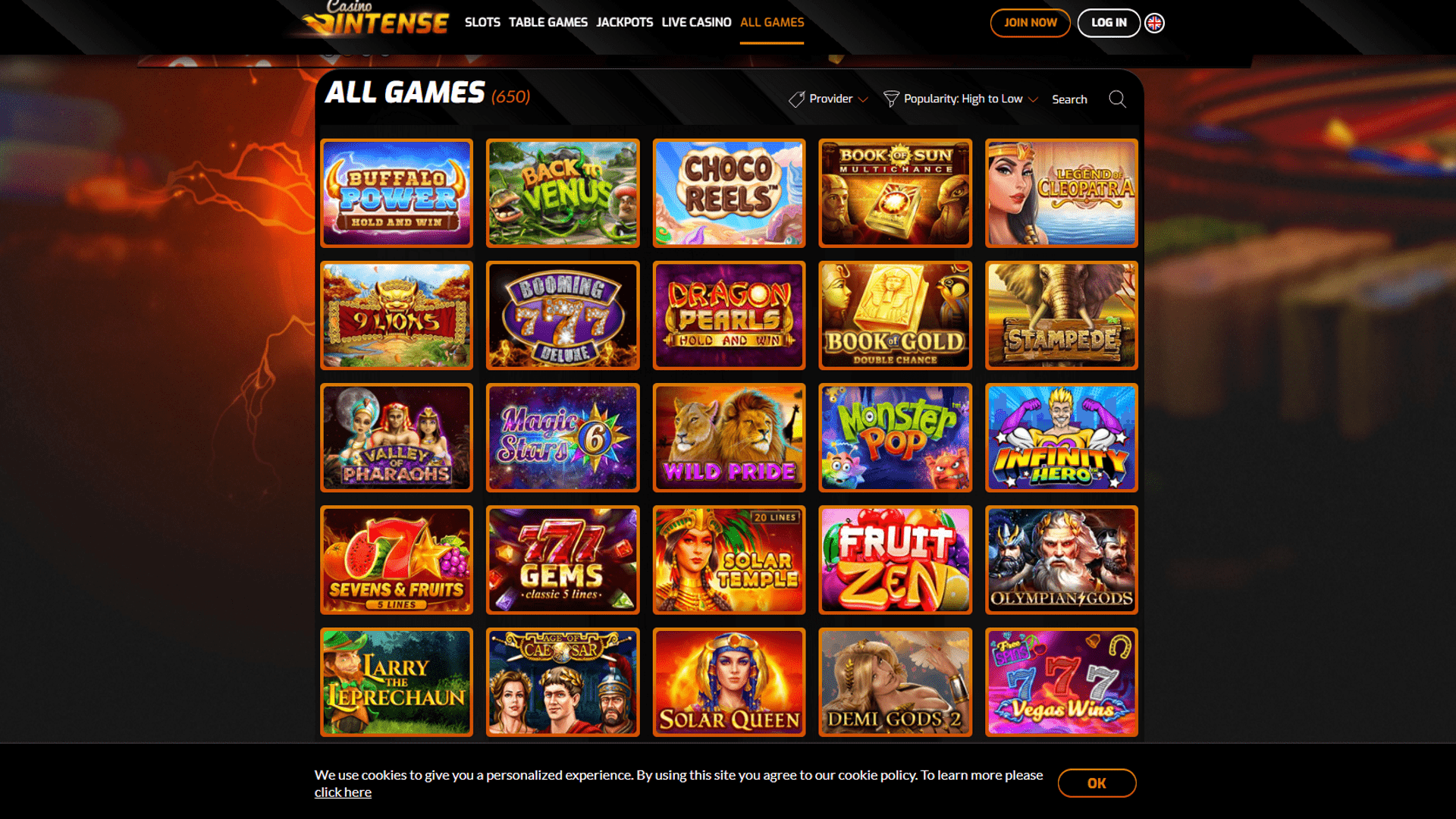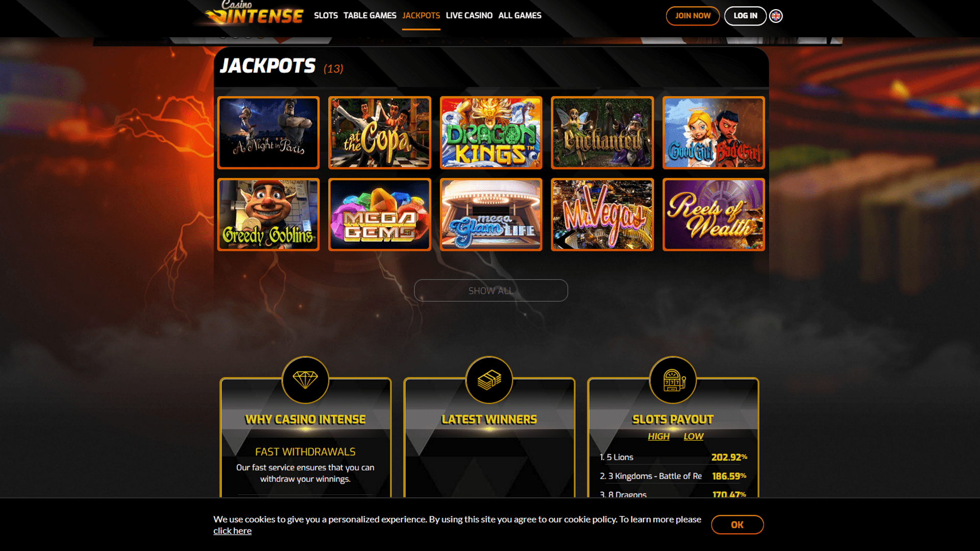 Casino Intense is an online casino that offers an impressive selection of games. They partner with some of the leading software providers in the industry, including Betsoft, Play’n GO, and Evolution Gaming, ensuring a diverse range of high-quality games. Whether you’re a fan of classic table games like blackjack and roulette or prefer the excitement of video slots and progressive jackpots, Casino Intense has something to suit every taste.