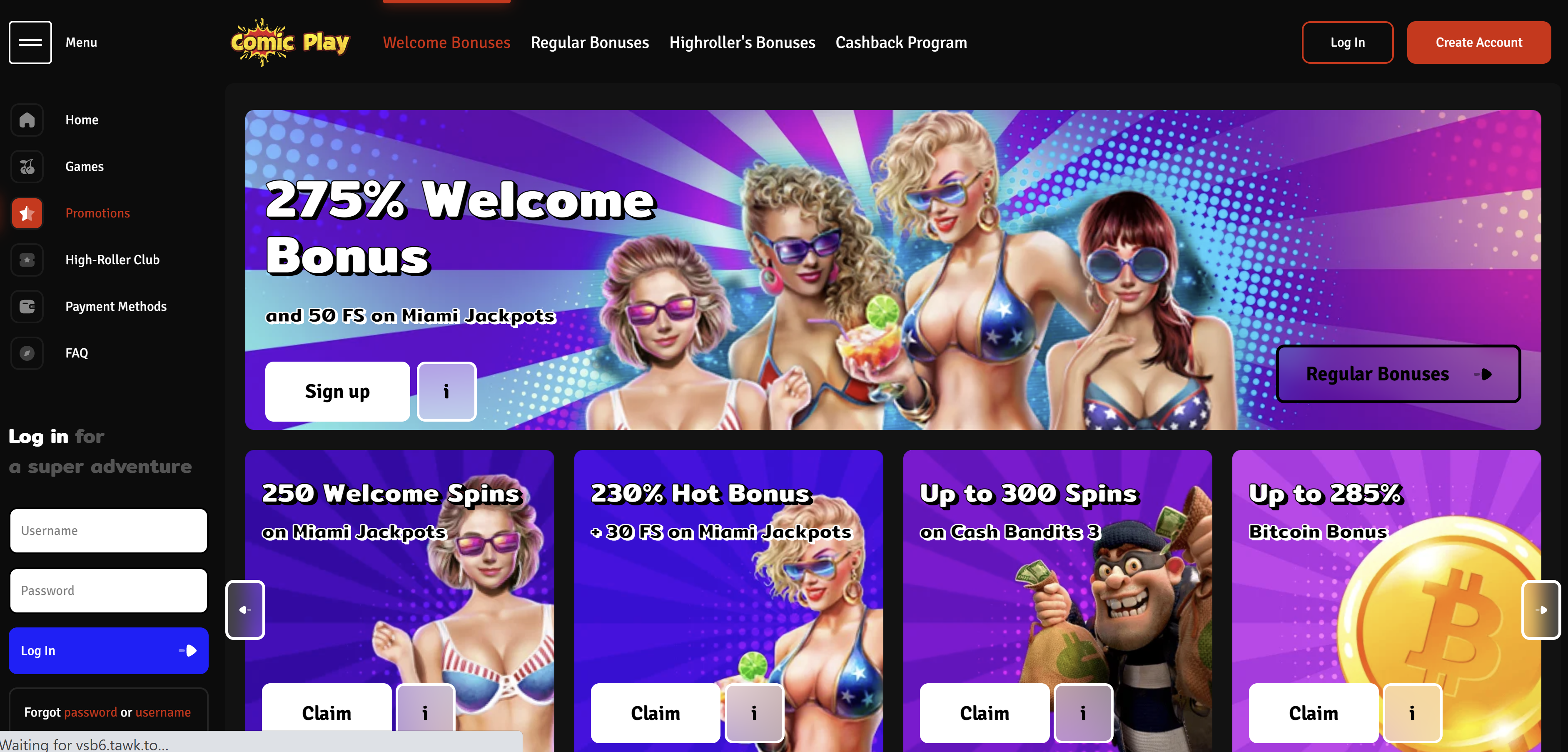 At Comic Play casino, new players are warmly welcomed with a generous bonus offer. Upon joining, you can receive a 275% match bonus and 50 free spins. Additionally, you can take part in exciting missions for a chance to earn up to 360 free spins with high rewards. With the use of special bonus codes, your gaming experience at Comic Play casino is sure to be a thrilling one.