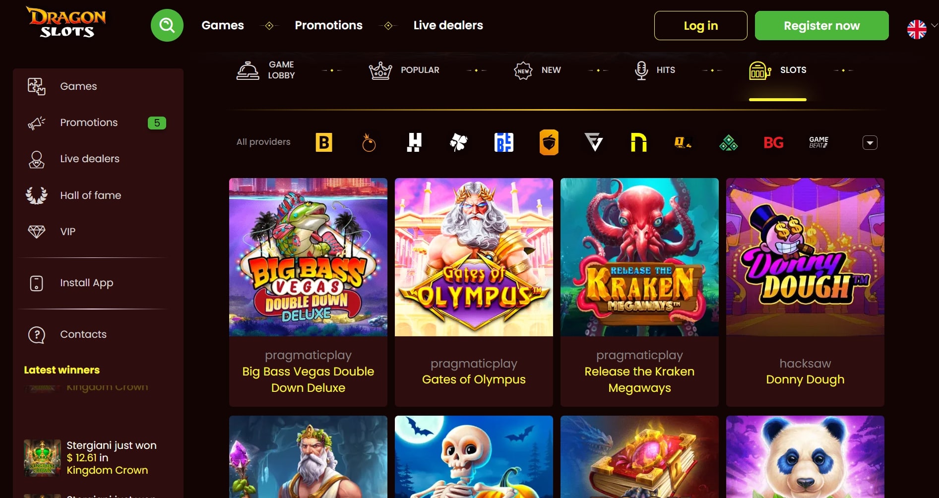 DragonSlots teams up with a massive roster of software developers. Expect top suppliers like NetEnt, Microgaming, Pragmatic Play, Play’n GO, and more niche providers such as Evoplay, Nolimit, and Hacksaw. This diversity ensures thousands of slots, table games (blackjack, roulette, baccarat, poker), and a robust live casino section.
