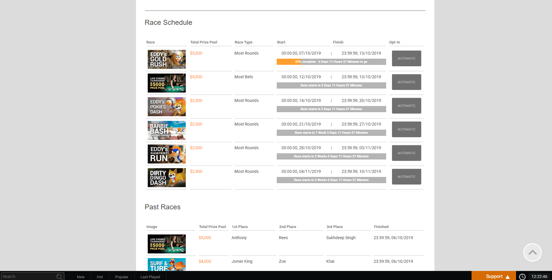 | Tournaments | Daily casino races with cash & spin prizes |
