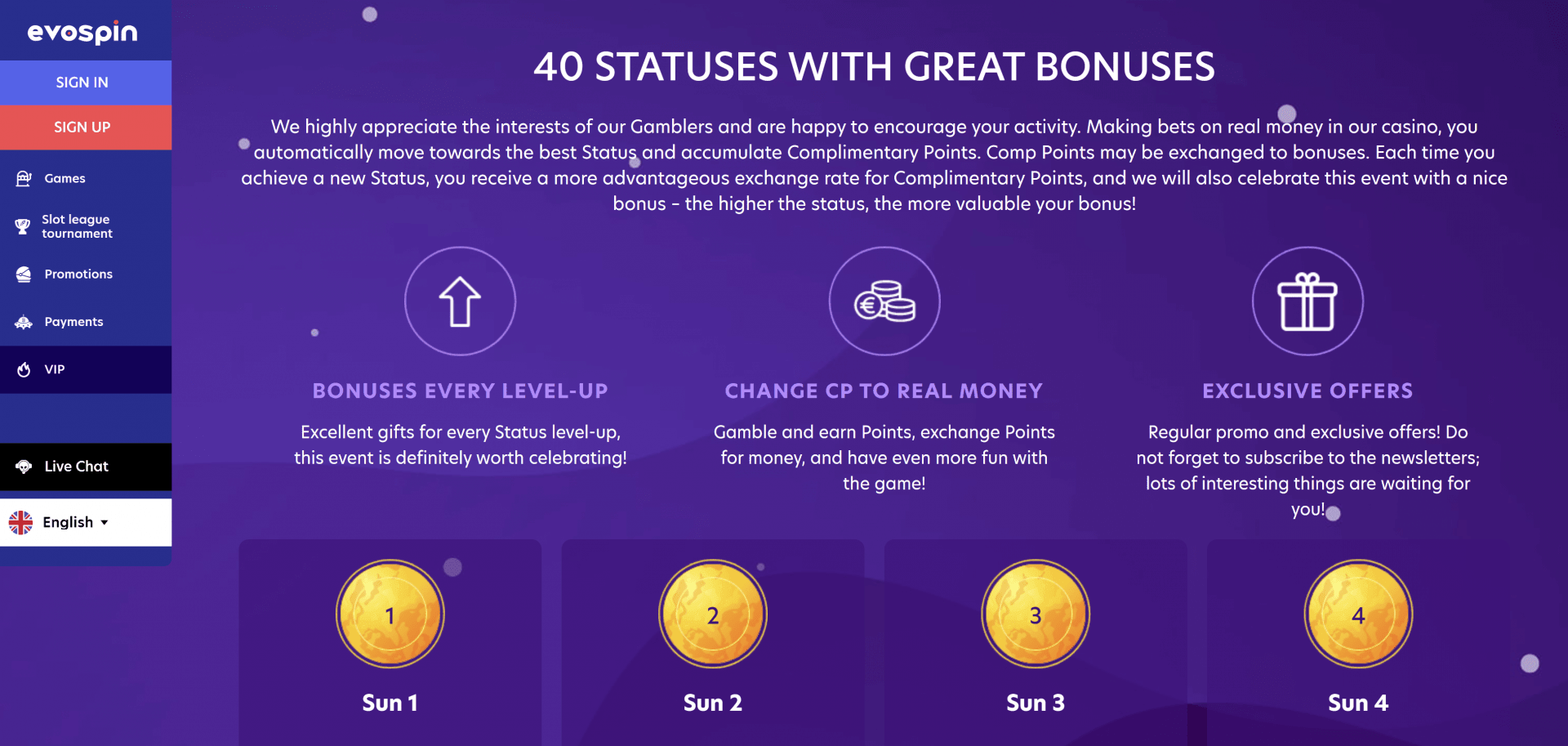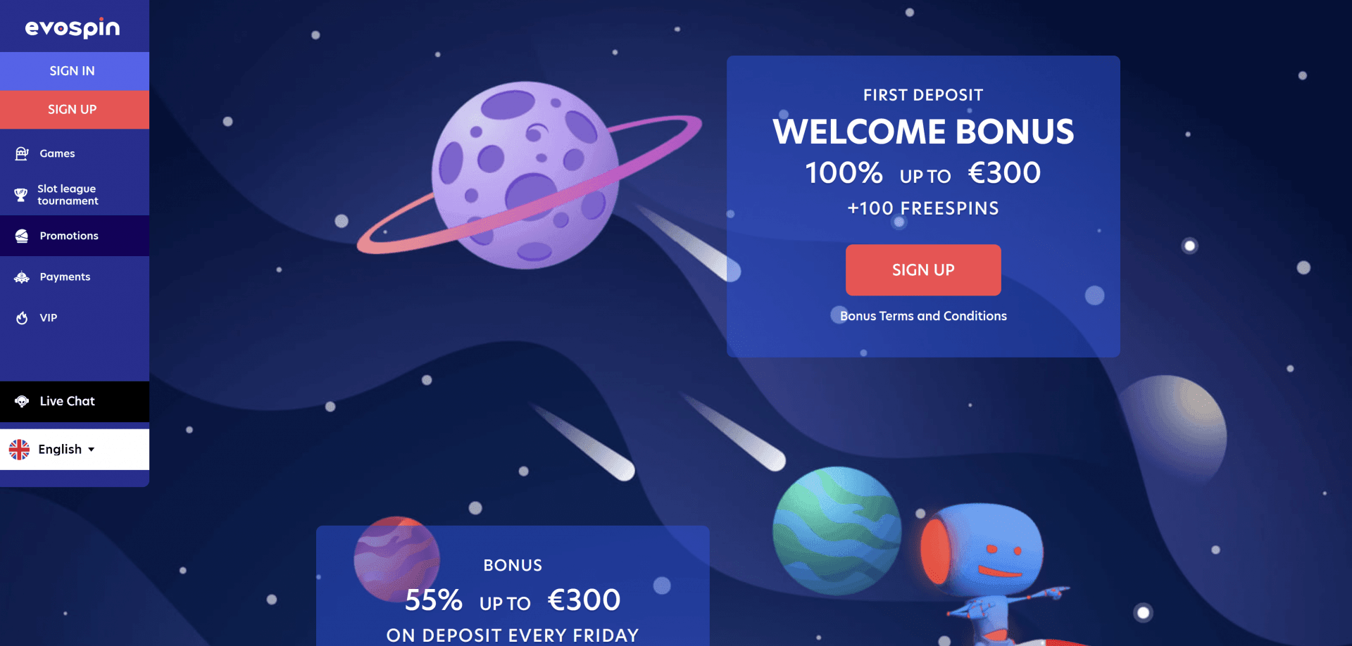 Embark on an intergalactic slot adventure with this recently established casino. Allow the vast universe to bestow upon you extraordinary casino offers, VIP bonuses, level-up bonuses, promotional offers, and more. EvoSpin casino holds a valid license and operates under the regulation of the esteemed Malta Gaming Authority, ensuring a safe and secure gaming environment. With a comprehensive range of services, including live chat and customer support available in 18 languages, you’ll find everything you need conveniently in one place.