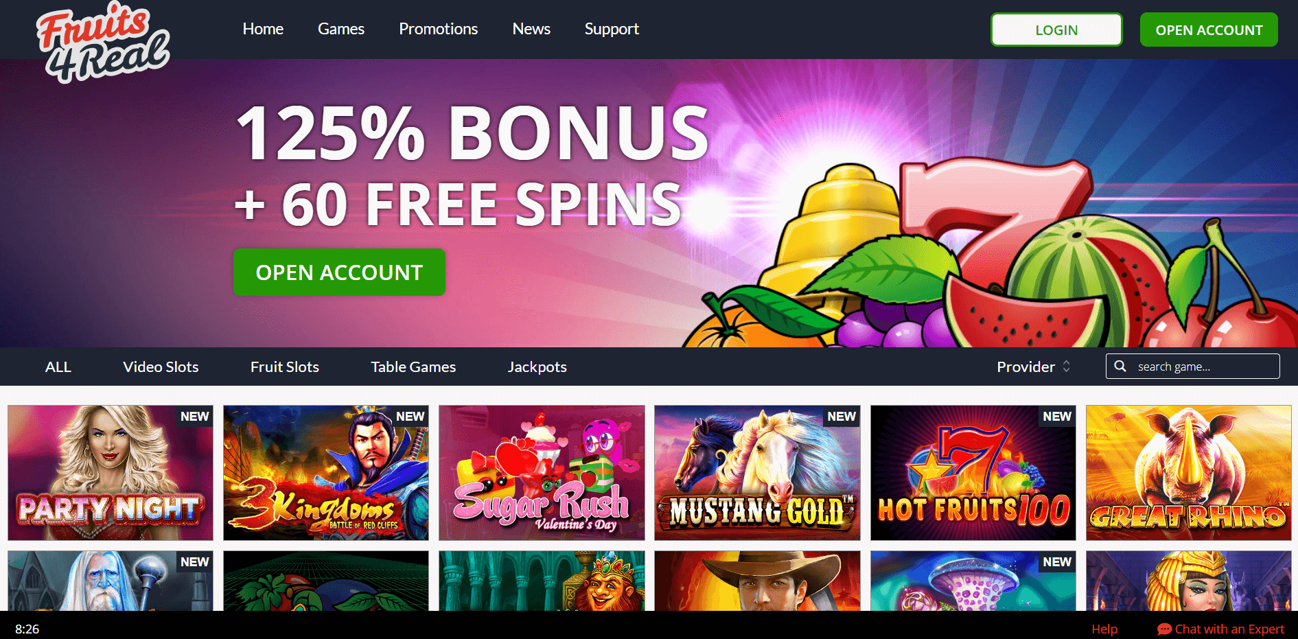 The best part of Fruits4Real casino is its vast collection of slots, especially fruit slots. Besides that, it also offers other casino games like jackpots, card games, table games, video slots, and live casino games.