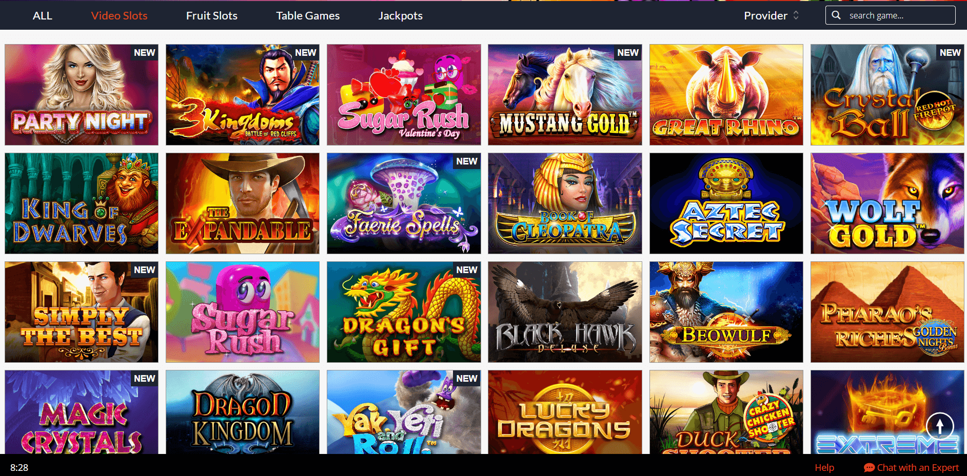 Moreover, this casino also offers a separate section for video slots. Check out games like Queenie, Expendables, El Patron, Book of Riches, Wild Anubis, etc.