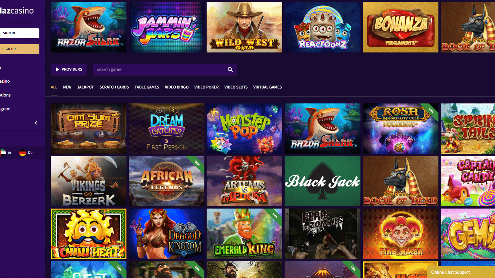Once you have signed up on the site, you will access various gaming providers and games, and they have live and online casino options. The following are the games offered, including Jackpot, Table Games, Video slots, video games, and virtual games.
