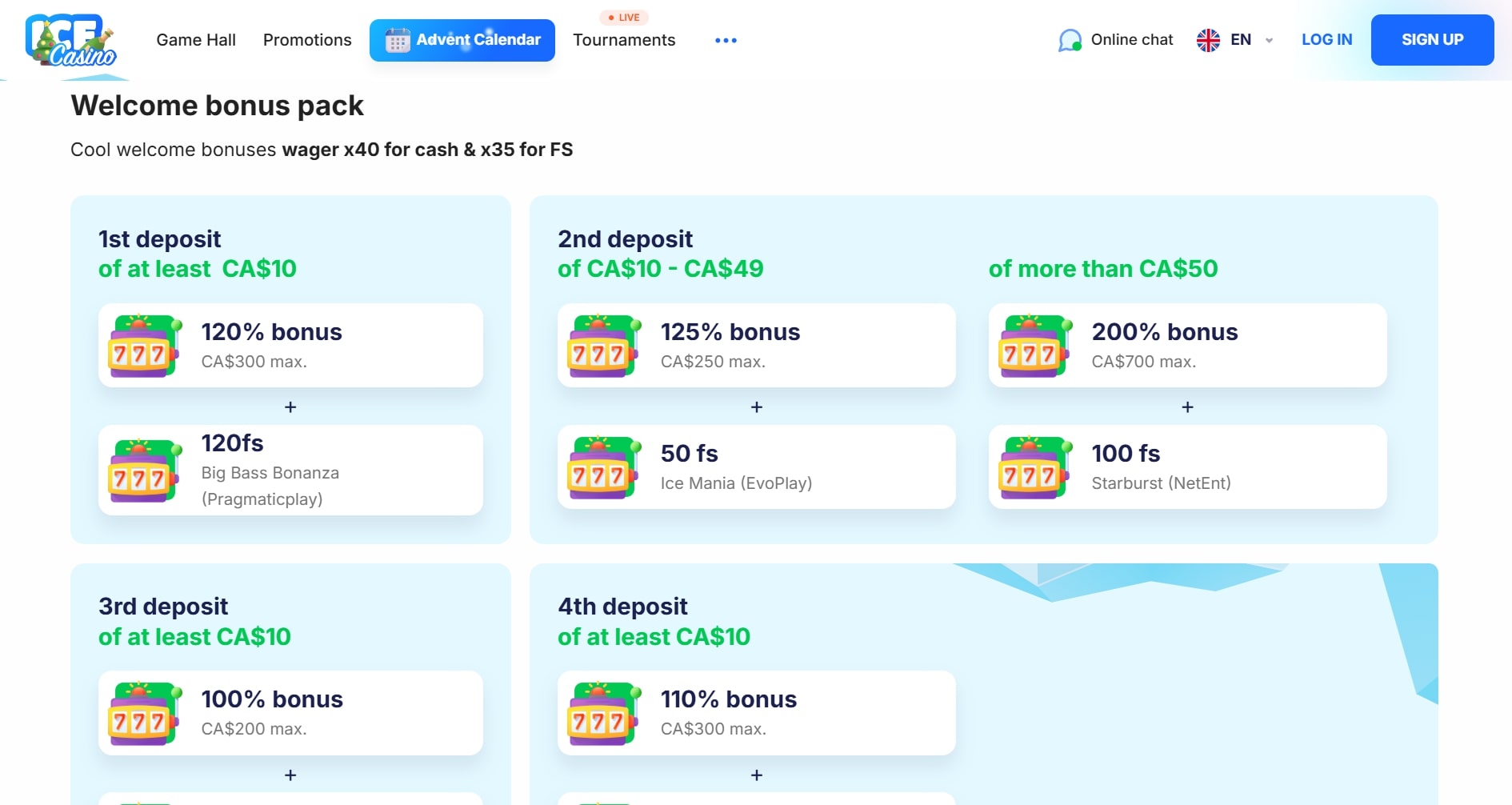 Ice Casino bonus 🎁