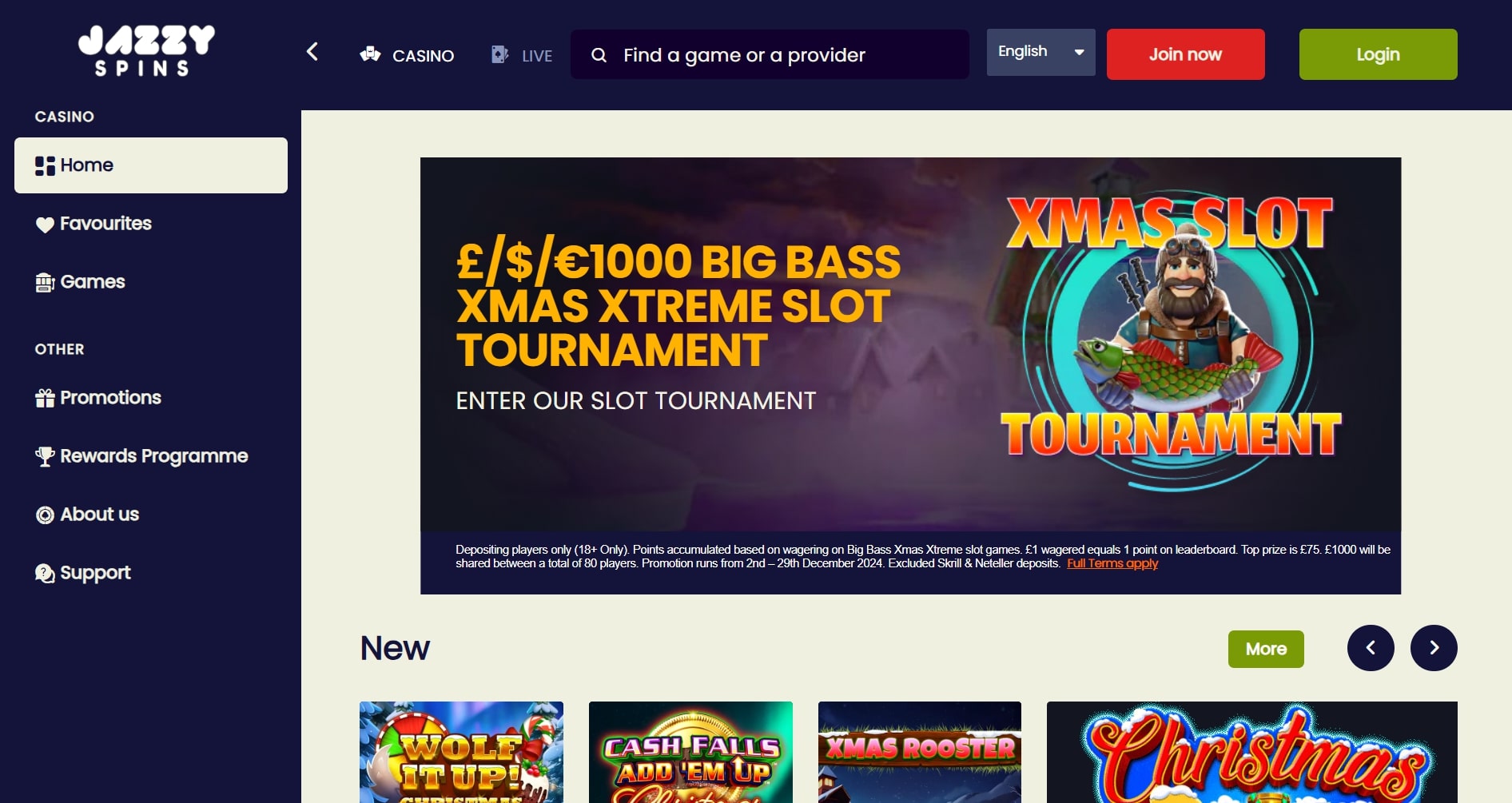 If youāre hunting for a fresh casino vibe that pairs big bonuses with lively, jazz-inspired flair, Jazzy Spins could be right up your alley. Its extensive catalog of slot games ensures a diverse selection suitable for various preferences. Itās not just another casinoāitās a show that promises a front-row seat to fun and value.