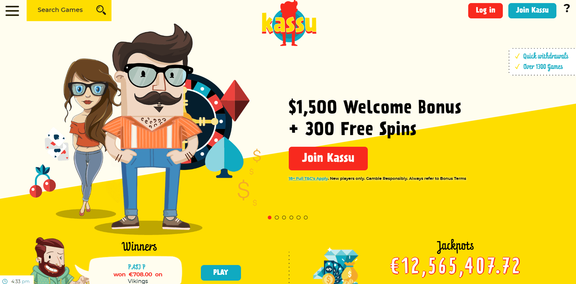 Kassu casino has its app (Android and iOS versions) for its players. You can download the app from their websites. The website is also mobile-optimized to ensure players can play whenever they want.